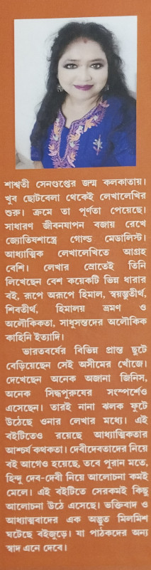 ভারতবর্ষের বিভিন্ন প্রান্ত ছুটে বেড়িয়েছেন সেই অসীমের খোঁজে। দেখেছেন অনেক অজানা জিনিস, অনেক সিদ্ধপুরুষের সংস্পর্শেও এসেছেন। তারই নানা ঝলক ফুটে উঠেছে ওনার লেখার মধ্যে। এই বইটিতেও রয়েছে আধ্যাত্মিকতার আশ্চর্য কথকতা। দেবীদেবতাদের নিয়ে বই আগেও হয়েছে, তবে পুরান মতে, হিন্দু দেব-দেবী নিয়ে আলোচনা কমই মেলে। এই বইটিতে সেরকমই কিছু আলোচনা উঠে এসেছে। ভক্তিবাদ ও আধ্যাত্মবাদের এক অদ্ভুত মিলমিশ ঘটেছে বইজুড়ে। যা পাঠকদের অন্য স্বাদ এনে দেবে।