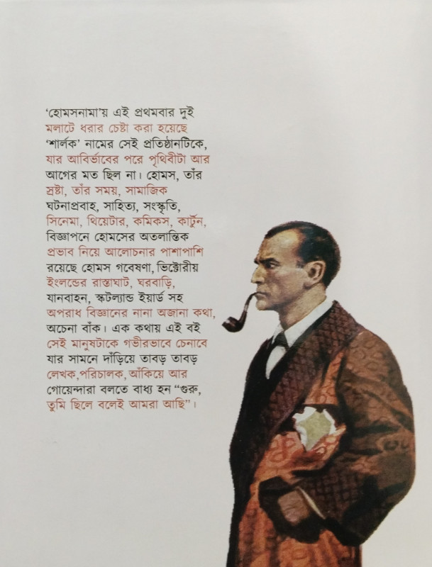 'হোমসনামা'য় এই প্রথমবার দুই মলাটে ধরার চেষ্টা করা হয়েছে 'শার্লক' নামের সেই প্রতিষ্ঠানটিকে, যার আবির্ভাবের পরে পৃথিবীটা আর আগের মত ছিল না। হোমস, তাঁর স্রষ্টা, তাঁর সময়, সামাজিক ঘটনাপ্রবাহ, সাহিত্য, সংস্কৃতি, সিনেমা, থিয়েটার, কমিকস, কার্টুন, বিজ্ঞাপনে হোমসের অতলান্তিক প্রভাব নিয়ে আলোচনার পাশাপাশি রয়েছে হোমস গবেষণা, ভিক্টোরীয় ইংলন্ডের রাস্তাঘাট, ঘরবাড়ি, যানবাহন, স্কটল্যান্ড ইয়ার্ড সহ অপরাধ বিজ্ঞানের নানা অজানা কথা, অচেনা বাঁক। এক কথায় এই বই সেই মানুষটাকে গভীরভাবে চেনাবে যার সামনে দাঁড়িয়ে তাবড় তাবড় লেখক, পরিচালক, আঁকিয়ে আর গোয়েন্দারা বলতে বাধ্য হন "গুরু, তুমি ছিলে বলেই আমরা আছি"।