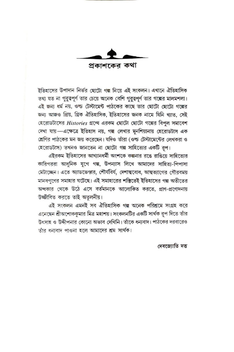 ইতিহাস মানেই অতীত। অতীতের জানা অজানা চিত্র-বিচিত্র কাহিনি নিয়েই ইতিহাস। কেই বা জানে — কেন পরিহাসপুরেই দুই রাজার যুদ্ধ হলো ? অথবা শিবাজী কিভাবে পালিয়ে গেলেন !! রনজিৎ সিংহ আর জীবন সিংহ এর মুখোমুখি হবার ঘটনা!! সর্বোপরি কেন গ্ৰীক সৈন্যদের দাড়ি কামাতে হলো? এরকম অজস্র ইতিহাসের ঘটনা প্রবাহ নিয়েই গল্প বলে অশোককুমার মিত্রের সম্পাদনা ও শিল্পী চন্দন বসুর চরিত্র চিত্রণে আরো আকর্ষনীয় হয়েছে।