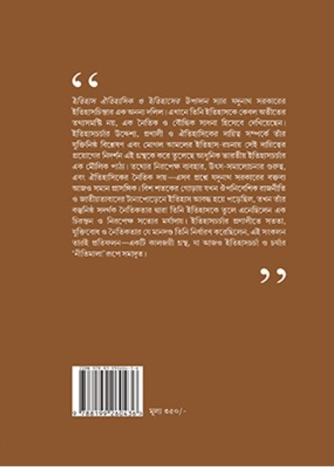 ইতিহাস ঐতিহাসিক ও ইতিহাসের উপাদান স্যার যদুনাথ সরকারের ইতিহাসচিন্তার এক অনন্য দলিল। এখানে তিনি ইতিহাসকে কেবল অতীতের তথ্যসমষ্টি নয়, এক নৈতিক ও বৌদ্ধিক সাধনা হিসেবে দেখিয়েছেন। ইতিহাসচর্চার উদ্দেশ্য, প্রণালী ও ঐতিহাসিকের দায়িত্ব সম্পর্কে তাঁর যুক্তিনিষ্ঠ বিশ্লেষণ এবং মোগল আমলের ইতিহাস-রচনায় সেই দায়িত্বের প্রয়োগের নিদর্শন এই গ্রন্থকে করে তুলেছে আধুনিক ভারতীয় ইতিহাসচর্চার এক মৌলিক পাঠ্য। তথ্যের নিরপেক্ষ ব্যবহার, উৎস-সমালোচনার গুরুত্ব, এবং ঐতিহাসিকের নৈতিক দায়—এসব প্রশ্নে যদুনাথ সরকারের বক্তব্য আজও সমান প্রাসঙ্গিক। বিশ শতকের গোড়ায় যখন ঔপনিবেশিক রাজনীতি ও জাতীয়তাবাদের টানাপোড়েনে ইতিহাস আবদ্ধ হয়ে পড়েছিল, তখন তাঁর বস্তুনিষ্ঠ সদর্থক নৈতিকতার দ্বারা তিনি ইতিহাসকে তুলে এনেছিলেন এক চিরন্তন ও নিরপেক্ষ সত্যের মর্যাদায়। ইতিহাসচর্চার প্রণালীতে সততা, যুক্তিবোধ ও নৈতিকতার যে মানদণ্ড তিনি নির্ধারণ করেছিলেন, এই সংকলন তারই প্রতিফলন—একটি কালজয়ী গ্রন্থ, যা আজও ইতিহাসচর্চা ও চর্যার ‘নীতিমালা’ রূপে সমাদৃত।