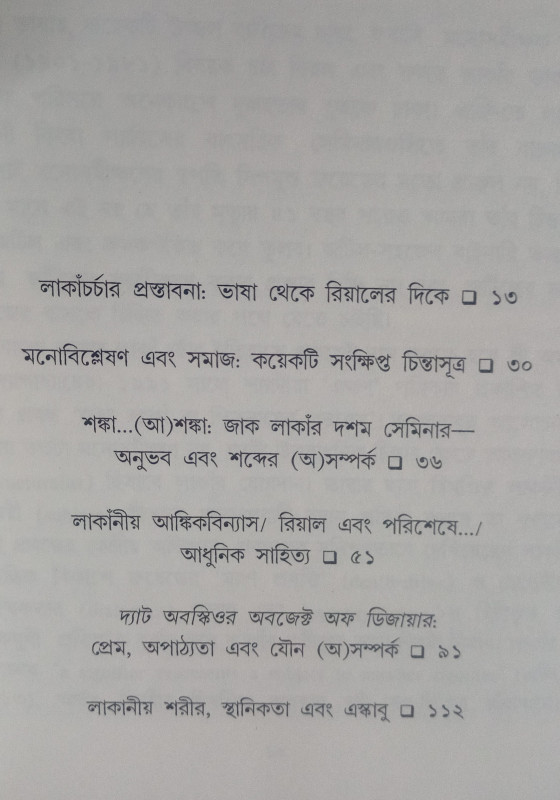 জাক লাকাঁর (১৯০১-১৯৮১) নামের সঙ্গে সচরাচর জুড়ে থাকে ফরাসি মনোবিশ্লেষণের ভাষাকেন্দ্রিক হয়ে ওঠার কথা। লাকীর মতে অবচেতন মনের কাঠামো ভাষাকাঠামোর অনুরূপ। কিন্তু অবচেতন মনকে তিনি ভাষার মধ্যে সীমাবদ্ধ করেননি। ভাষাকেও বারবার নতুন করে ভেবেছেন। এই গ্রন্থে লাকানীয় মনোবিশ্লেষণের ভাষা অতিক্রমণের গতিপথ নির্দেশ করার চেষ্টা করা হয়েছে ওঁর অন্তিমপর্বের চিন্তনকে অগ্রাধিকার দিয়ে। মনোবিশ্লেষণের সামাজিক, রাজনৈতিক প্রেক্ষিত, ক্লিনিকাল প্রয়োগ ছাড়াও সাহিত্য, সংস্কৃতি, চলচ্চিত্রচর্চায় লাকাঁনীয় মনোবিশ্লেষণের প্রায়োগিক আলোচনা প্রস্তাবিত হয়েছে এই বইয়ের প্রবন্ধগুলিতে। ঘৃণা-মৃত্যু-দ্বেষের যে ধারাপাতের সাক্ষী আমাদের সমকাল তা কী ধরনের অভিঘাত তৈরি করবে মানুষের অবচেতনে? কীভাবে পালটাবে আমাদের অবচেতন? এই সময়ের ঘনায়মান অন্ধকারকে বুঝতে আমাদের বারবার লাকার মুখোমুখি হতে হবে।