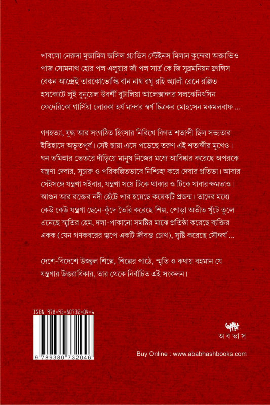 দেশে-বিদেশে উজ্জ্বল শিল্পে, শিল্পের পাঠে, স্মৃতি ও কথায় বহমান যে যন্ত্রণার উত্তরাধিকার, তার থেকে নির্বাচিত এই সংকলন।