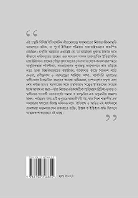 এই গ্রন্থটি বিশিষ্ট ইতিহাসবিদ শ্রীরমেশচন্দ্র মজুমদারের নিজের জীবনস্মৃতি অবলম্বনে রচিত, যা পূর্বে ইতিহাস পত্রিকায় ধারাবাহিকভাবে প্রকাশিত হয়েছিল। গ্রন্থটির অনন্যতা এখানেই যে, তা আমাদের বুঝতে সাহায্য করে কীভাবে ফরিদপুরের গ্রামের এক সাধারণ বালক প্রবাদপ্রতিম ইতিহাসবিদ্ হয়ে উঠলেন। গ্রামের গোঁড়া কুসংস্কারের বেড়াজাল থেকে কলকাতার শহুরে আধুনিকতার পরিশীলন, বাংলাদেশের পুরাতত্ত্ব আন্দোলনে তাঁর জড়িয়ে পড়া, ঢাকা বিশ্ববিদ্যালয়ের কর্মজীবন, গবেষণার কাজে বিদেশে পাড়ি দেওয়া, রবীন্দ্রনাথ ও শরৎচন্দ্রের সান্নিধ্যে আসা; সর্বোপরি ভারতের স্বাধীনতার টালমাটাল সময়ের প্রত্যক্ষ অভিজ্ঞতা, দেশভাগের যন্ত্রণা এবং শেষ পর্যন্ত ভারত সরকারের সঙ্গে মতবিরোধ সত্ত্বেও ইতিহাসের সত্যের সঙ্গে আপস না করা—তাঁর নিজের এই সামগ্রিক স্মৃতিচারণ ব্রিটিশ-ভারত ও স্বাধীনতা-পরবর্তী ভারতবর্ষের সমাজ ও সংস্কৃতির এক অতুলনীয় প্রামাণ্য সাক্ষ্য। পাঠকের জন্য এটি শুধুমাত্র আত্মজীবনী নয়, বরং বিংশ শতাব্দীর এক অসাধারণ সময়ের জীবন্ত দলিলও বটে। ইতিহাস ও স্মৃতির এই সংমিশ্রণে রমেশচন্দ্র মজুমদার যেন একাধারে ব্যক্তি, চিন্তক ও ইতিহাস-স্রষ্টা হিসেবে আত্মপ্রকাশ করেছেন এই গ্রন্থে।