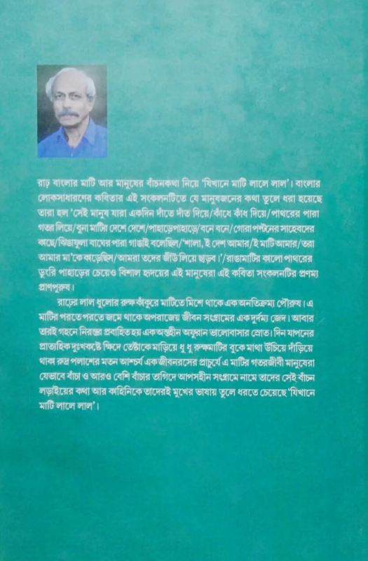 রাঢ় বাংলার মাটি আর মানুষের বাঁচনকথা নিয়ে 'যিখানে মাটি লালে লাল'। বাংলার লোকসাধারণের কবিতার এই সংকলনটিতে যে মানুষজনের কথা তুলে ধরা হয়েছে তারা হল 'সেই মানুষ যারা একদিন দাঁতে দাঁত দিয়ে/কাঁধে কাঁধ দিয়ে/পাথরের পারা গতর লিয়ে/বুনা মাটির দেশে দেশে/পাহাড়েপাহাড়ে/বনে বনে/গোরা পল্টনের সাহেবদের কাছে/ঝিঙাফুলা বাঘের পারা গাঙাই বলেছিল 'শালা, ই দেশ আমার/ই মাটি আমার/তরা আমার মা'কে কাড়েছিস/আমরা তদের জীউ লিয়ে ছাড়ব।' রাঙামাটির কালো পাথরের ডুংরি পাহাড়ের চেয়েও বিশাল হৃদয়ের এই মানুষেরা এই কবিতা সংকলনটির প্রণম্য প্রাণপুরুষ।