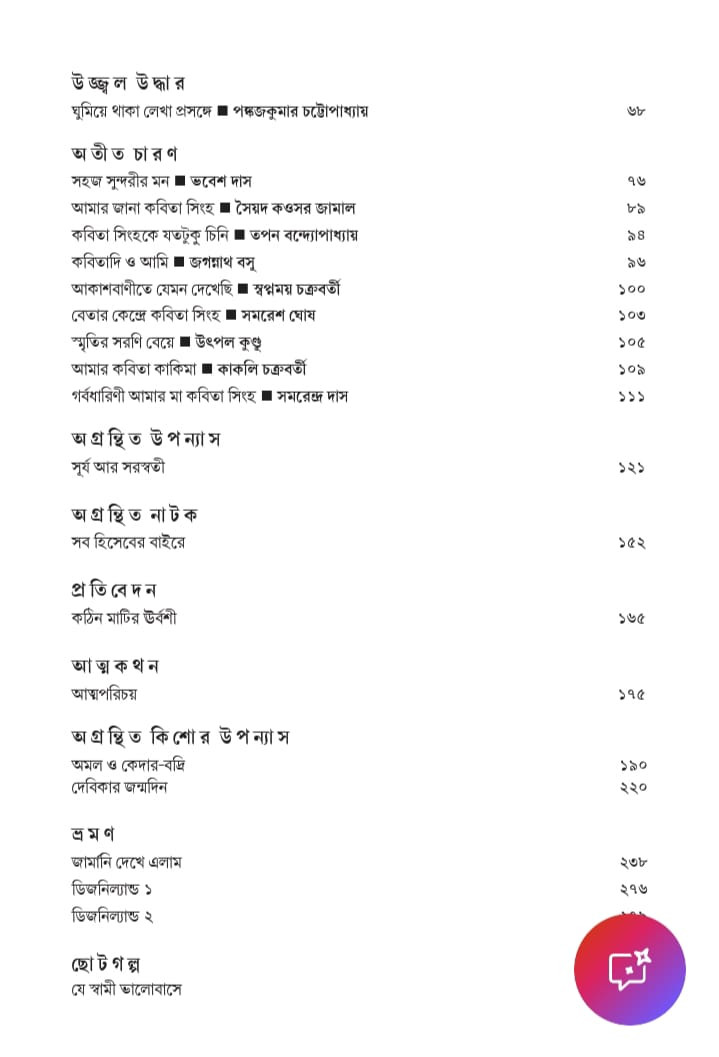 অতীত চারণ করেছেন তপন বন্দ্যোপাধ্যায়, সৈয়দ কওসর জামাল, ভবেশ দাস প্রমুখ। সাহিত্য নিয়ে আলোচনা করেছেন সুতপন চট্টোপাধ্যায়, অনুরাধা মহাপাত্র, মণিদীপা নন্দী বিশ্বাস, অর্পিতা ভট্টাচার্য, গবেষিকা সহেলি সামন্ত এবং মৌমিতা বিশ্বাস প্রমুখ। রয়্যাল সাইজের ৪২৪ পৃষ্ঠার মধ্যে ৩১৩ পৃষ্ঠা নিবেদিত হয়েছে কবিতা সিংহের অগ্রন্থিত উপন্যাস, কিশোর উপন্যাস, গল্প, গদ্য, নাটক, ভ্রমণ কাহিনি, রিপোর্টাজ ইত্যাদি পরিবেশনে। নিশ্চিতভাবে একটি সংরক্ষণযোগ্য সংখ্যা।