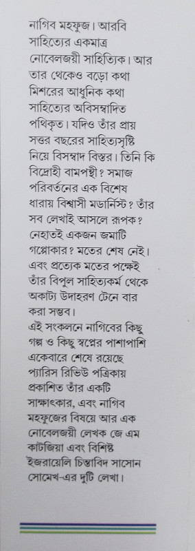 এই সংকলনে নাগিবের কিছু গল্প ও কিছু স্বপ্নের পাশাপাশি একেবারে শেষে রয়েছে প্যারিস রিভিউ পত্রিকায় প্রকাশিত তাঁর একটি সাক্ষাৎকার, এবং নাগিব মহফুজের বিষয়ে আর এক নোবেলজয়ী লেখক জে এম কাটজিয়া এবং বিশিষ্ট ইজরায়েলি চিন্তাবিদ সাসোন সোমেখ-এর দুটি লেখা।