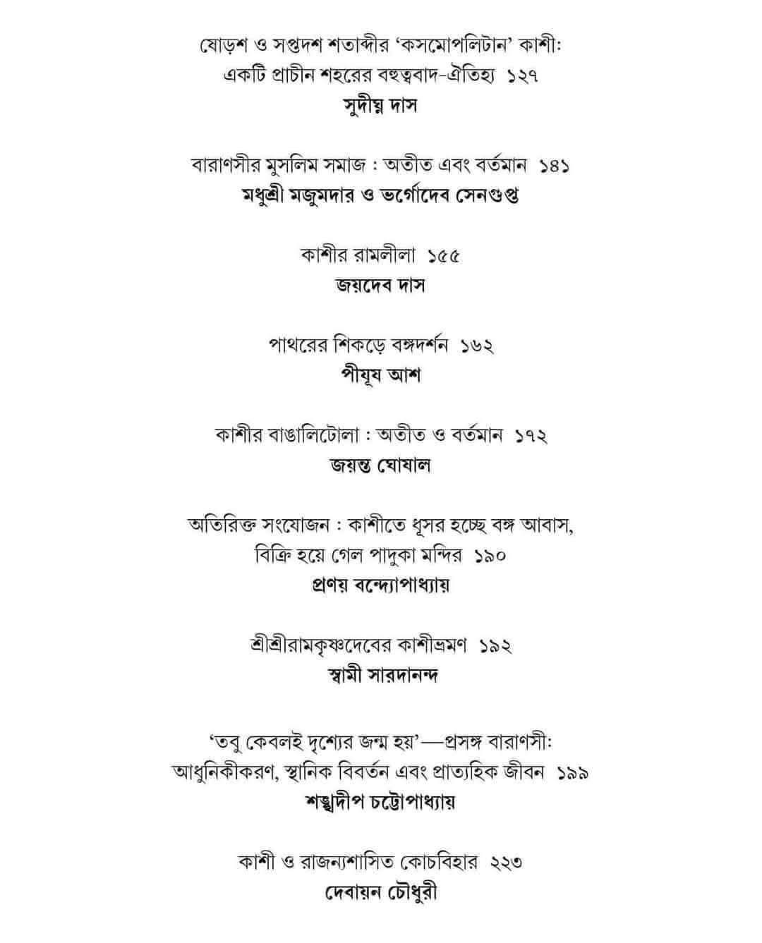 কাশী—যে জনপদের সঙ্গে দীর্ঘ যুগ ধরে বাঙালির আত্মিক-যোগ। ‘বার্ধক্যে বারাণসী’ শব্দবন্ধটি এখন বাংলা প্রবাদে পরিণত। তবে বাঙালি শুধু বার্ধক্যেই বারাণসী যাত্রা করতেন এমন নয়। কাশীতে বাঙালিরা গড়ে তুলেছিলেন তাঁদের নিজস্ব অভিজ্ঞান—বাঙালিটোলা। সাহিত্যে, সিনেমায়, বাঙালি মননে কাশী বহু যুগ ধরেই নানা ভাবে ছাপ রেখেছে। ‘কাশীবৃত্তান্ত : পুরাণকাল থেকে সমকাল’ গ্রন্থটি কাশীর বিভিন্ন বিষয়ের ওপর এক উজ্জ্বল আলোকপাত। পৌরাণিক যুগ থেকে হাল আমলের কাশী কীভাবে আজও নিজেকে আপন বৈশিষ্ট্যে বাঁচিয়ে রেখেছে, তারই অনুপুঙ্খ পর্যালোচনা।