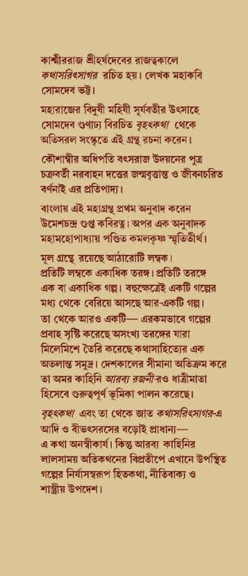 মূল গ্রন্থে রয়েছে আঠারোটি লম্বক। প্রতিটি লম্বকে একাধিক তরঙ্গ। প্রতিটি তরঙ্গে এক বা একাধিক গল্প। বহুক্ষেত্রেই একটি গল্পের মধ্য থেকে বেরিয়ে আসছে আর-একটি গল্প। তা থেকে আরও একটি- এরকমভাবে গল্পের প্রবাহ সৃষ্টি করেছে অসংখ্য তরঙ্গের যারা মিলেমিশে তৈরি করেছে কথাসাহিত্যের এক অতলান্ত সমুদ্র। দেশকালের সীমানা অতিক্রম করে তা অমর কাহিনি আরব্য রজনী-রও ধাত্রীমাতা হিসেবে গুরুত্বপূর্ণ ভূমিকা পালন করেছে।