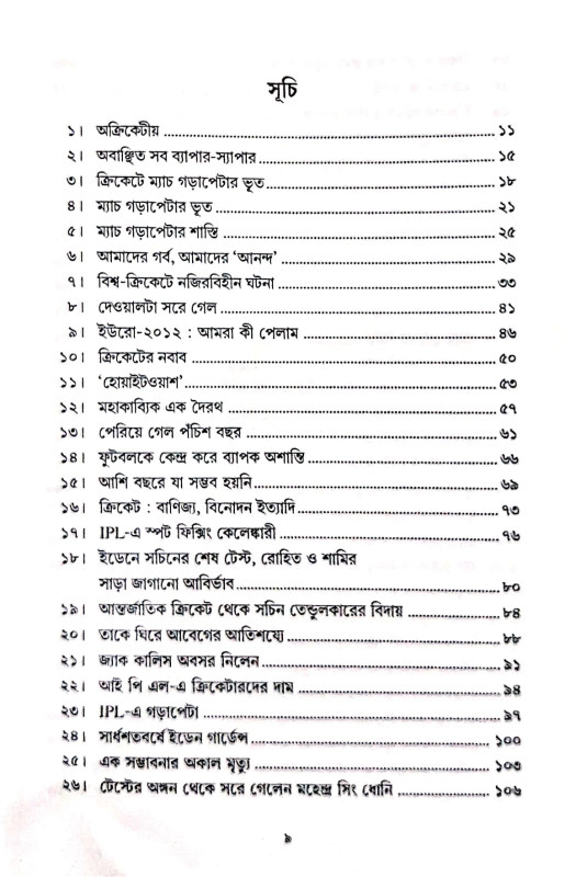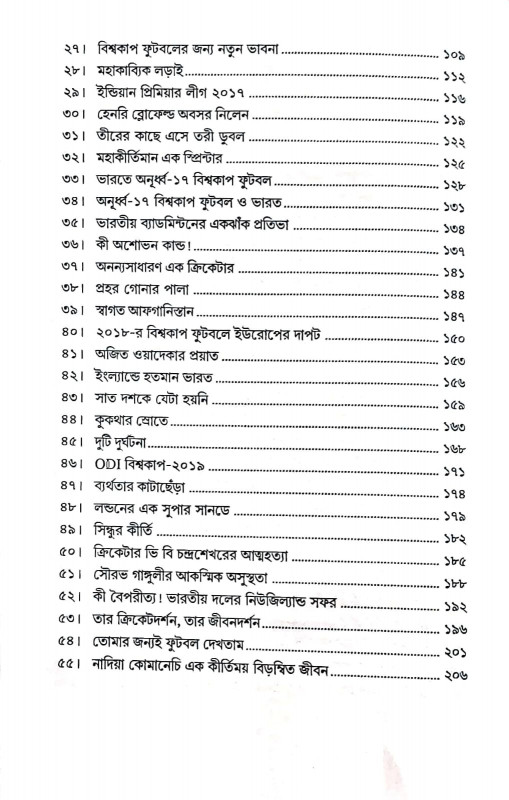 বাদ যায়নি বিশ্বনাথন আনন্দের কীর্তি। বাদ যায়নি ২০০১-এর নভেম্বরে পোর্ট এলিজাবেথে দক্ষিণ আফ্রিকার বিরুদ্ধে দ্বিতীয় ক্রিকেট টেস্টে ভারতীয় দলের ছয়জন ক্রিকেটারের বিরুদ্ধে শাস্তিমূলক পদক্ষেপের সিদ্ধান্ত ঘোষনা যা বিশ্বক্রিকেটে নজিরবিহীন বলে চিহ্নিত হয়ে রয়েছে। রয়েছে ইন্ডিয়ান প্রিমিয়ার লীগের ক্রিকেট-বাণিজ্য ও ক্রিকেট-বিনোদন নিয়ে লেখা, ইডেন গার্ডেন্সে সচিন তেন্ডুলকারের শেষ টেস্ট ম্যাচ ও সেই টেস্টে রোহিত শর্মা ও মহম্মদ শামির সাড়া জাগানো আবির্ভাবের কথা। ইডেন গার্ডেন্সের সার্ধশতবর্ষপূর্তি, ভারতীয় ব্যাডমিন্টনে একঝাঁক প্রতিভার উপস্থিতি, অজিত ওয়াদেকারের প্রয়াণ, টেলিভিশন শো-তে মহিলাদের সম্পর্কে হার্দিক পান্ড্য এবং কে এল রাহুলের আপত্তিকর মন্তব্য নিয়ে ভারতীয় ক্রিকেট মহলে আলোড়নও জায়গা পেয়েছে এই গ্রন্থে।