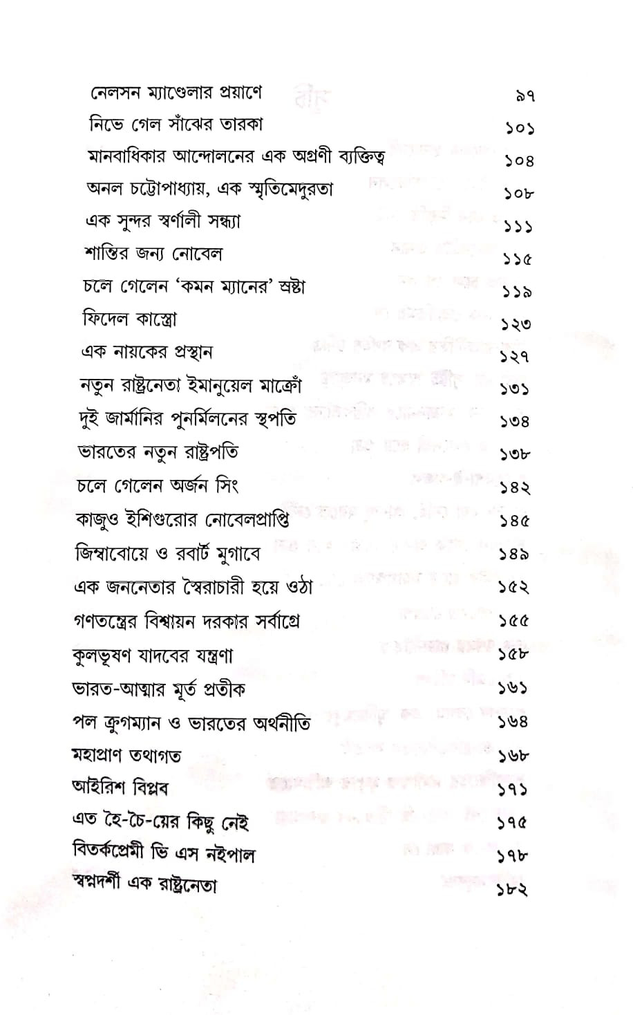 এদের ছাড়াও আরো অনেকের কথা রয়েছে এই বইয়ে। রয়েছে মানুষের জীবনের ধ্রুবতারাসম রবীন্দ্রনাথের কথা। রয়েছে মানবাধিকার আন্দোলনের অন্যতম অগ্রণী ব্যক্তিত্ব রেভারেন্ড জেসি জ্যাকসন, কৈলাশ সত্যার্থী ও মালালা ইউসুফজাই, 'কমন ম্যান'-য়ের স্রষ্টা আর. কে. লক্ষ্মণ, ফিদেল কাস্ত্রো, বিনোদ খান্না, দিলীপ কুমার, ঋষি কাপুর, সুশান্ত সিং রাজপুত, হেলমুট কোল, এয়ার মার্শাল অর্জন সিং, নোবেলজয়ী সাহিত্যিক কাজুও ইশিগুরো, কুলভূষণ যাদব, সবিতা হলপ্পানাভার, প্রণব মুখোপাধ্যায়, অটল বিহারী বাজপেয়ী, ভি এস নইপাল, নাম্বি নারায়ণন, জুজানা কাপুতোভা, মুজিবুর রহমান, বল্লভভাই প্যাটেল, বি আর আম্বেদকার, শ্যামাপ্রসাদ মুখোপাধ্যায়ের মতো ব্যক্তিত্বের কথা। রয়েছে গৌতম বুদ্ধ, প্রভু যীশু, স্বামী বিবেকানন্দ, গুরু নানক, ঈশ্বরচন্দ্র বিদ্যাসাগর ও নেতাজী সুভাষচন্দ্র বসুর মতো অনন্যসাধারণ মানুষের জীবনাদর্শ ও কর্মের কথাও।