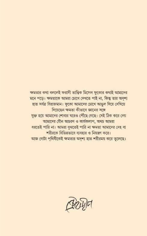 ক্ষমতার কথা বললেই ফরাসি তাত্ত্বিক মিশেল ফুকোর কথাই আমাদের মনে পড়ে। ক্ষমতাকে আমরা চোখে দেখতে পাই না, কিন্তু তার অদৃশ্য হাত সর্বত্র বিরাজমান। ফুকো আমাদের চোখে আঙুল দিয়ে দেখিয়ে দিয়েছেন, ক্ষমতা কীভাবে জ্ঞানের সঙ্গে যুক্ত হয়ে আমাদের শোবার ঘরেও পৌঁছে গেছে। সেই ঠিক করে দেয় আমাদের যৌন আচরণ ও কার্যকলাপ, অথচ আমরা ধরতেই পারি না। আমরা বুঝতেই পারি না ক্ষমতা আমাদের দেহ বা শরীরকে বিভিন্নভাবে ব্যবহার ও নিয়ন্ত্রণ করে। আজ গোটা পৃথিবীকেই ক্ষমতার অদৃশ্য হাত শরীরময় করে তুলেছে।