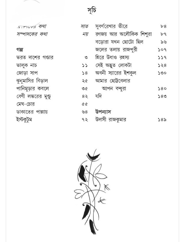 উপন্যাস ‘উদাসী রাজকুমার’, একগুচ্ছ গল্প (যেমন সুবর্ণরেখার তীরে, ইস্টকুটুম, হিরে উধাও রহস্য ইত্যাদি), স্মৃতিকথা এবং একটি অদ্ভুত ভাবনাটুকরো দিয়ে গাঁথা কিশোর সাহিত্য সংকলন। তাঁর নানা স্বাদের রচনার পরিচয় কিশোর-কিশোরীরা পাবে এই দু-মলাটের মধ্যে। সঙ্গে রয়েছে তাঁর প্রায় দুষ্প্রাপ্য "যদি" লেখমালার একটি রচনা স্মৃতিভ্রংশ রোগে আক্রান্ত কাজি নজরুলের স্মৃতি ফিরে আসা ও চলে যাওয়ার একটি কাল্পনিক কাহিনির মধ্যে বাংলার একটি যুগের বেদনা-বিধুর ইতিহাসের অসাধারণ স্মৃতিচিত্র নবীন পাঠকদের হাতে আমাদের অতিরিক্ত উপহার।