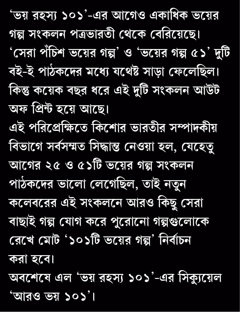 'ভয় রহস্য ১০১'-এর আগেও একাধিক ভয়ের গল্প সংকলন পত্রভারতী থেকে বেরিয়েছে।