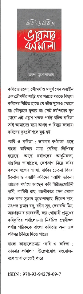 বাংলা কাব্যালোচনায় 'কবি ও কবিতা : ভাবনার বর্ণমালা' উল্লেখযোগ্য সংযোজন বলে ভাবা যেতেই পারে।