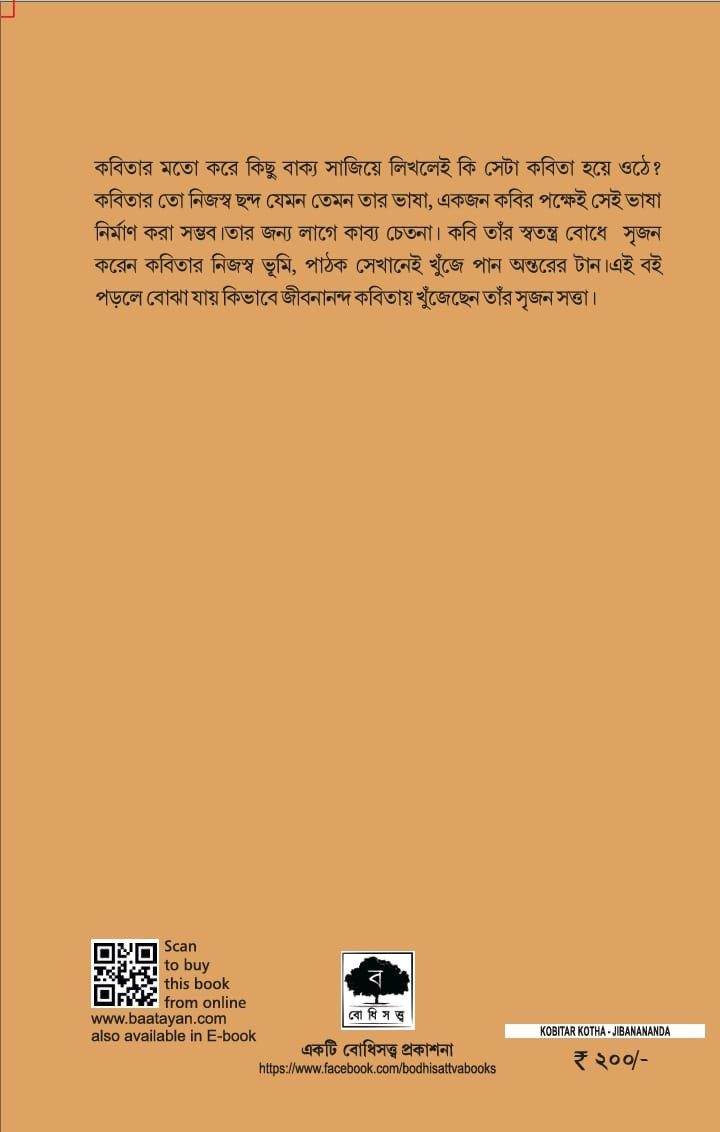 কবিতার মতো করে কিছু বাক্য সাজিয়ে লিখলেই কি সেটা কবিতা হয়ে ওঠে? কবিতার তো নিজস্ব ছন্দ যেমন তেমন তার ভাষা, একজন কবির পক্ষেই সেই ভাষা নির্মাণ করা সম্ভব। তার জন্য লাগে কাব্য চেতনা। কবি তাঁর স্বতন্ত্র বোধে সৃজন করেন কবিতার নিজস্ব ভূমি, পাঠক সেখানেই খুঁজে পান অন্তরের টান।এই বই পড়লে বোঝা যায় কিভাবে জীবনানন্দ কবিতায় খুঁজেছেন তাঁর সৃজন সত্তা।