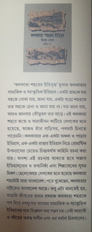 'কলকাতা শহরের ইতিবৃত্ত' মুখ্যত কলকাতার সামাজিক ও সাংস্কৃতিক ইতিহাস। একটা গ্রামকে যত সহজে বোঝা যায়, জানা যায়, একটা বড়ো শহরকে তত সহজে চেনা ও জানা যায় না। যত জানা যায়, আরও জানবার কৌতূহল তত বাড়ে। এই কলকাতা শহরে জন্মে ও সারাজীবন কাটিয়ে লেখকের মনে হয়েছে, আজও তাঁর বাড়িঘর, পথঘাট চিনতে পারেননি। কলকাতার এক-একটা অঞ্চল ও পাড়ার ইতিহাস, এক-একটা রাস্তার ইতিহাস নিয়ে রোমান্টিক উপন্যাসের চেয়েও চিত্তাকর্ষক কাহিনি রচনা করা যায়। অবশ্য এই রচনায় থাকতে হবে সজাগ ইতিহাসবোধ ও তথ্যনিষ্ঠা এবং শিল্পবোধের সুষম মিশ্রণ। ছেলেবেলায় লেখকের মনে হয়েছে কলকাতা শহরটাই সারা বাংলাদেশ। পরে বুঝেছেন, কলকাতার বাইরেও বাংলাদেশ আছে। তবু এটা মানতেই হয়, বাঙালি জীবনের প্রধান রঙ্গমঞ্চ কলকাতা শহরকে বাদ দিয়ে নবযুগের বাংলার সামাজিক ও সাংস্কৃতিক ইতিহাসের ধারা বিশ্লেষণ করা সম্ভব নয়। সেই কারণেই এ-বইয়ের গুরুত্ব অসীম এবং এর মর্যাদা চিরকালের।