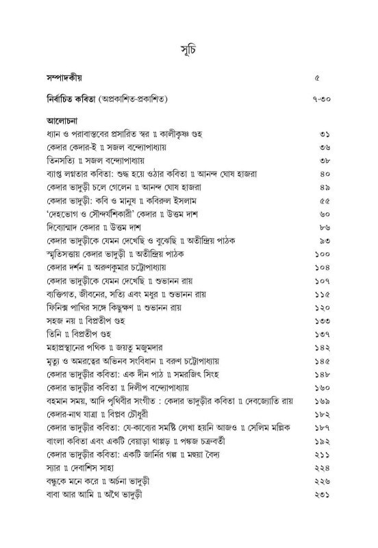 রয়েছে কেদার ভাদুড়ীর অপ্রকাশিত, অগ্ৰন্থিত কবিতা ও প্রচুর গদ্য।