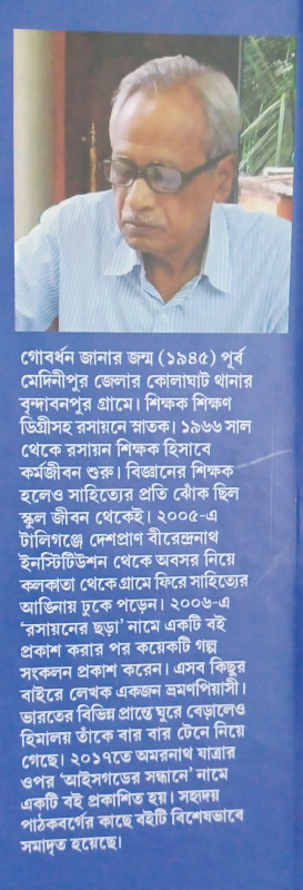 গোবর্ধন জানার জন্ম (১৯৪৫) পূর্ব মেদিনীপুর জেলার কোলাঘাট থানার বৃন্দাবনপুর গ্রামে। শিক্ষক শিক্ষণ ডিগ্রীসহ রসায়নে স্নাতক। ১৯৬৬ সাল থেকে রসায়ন শিক্ষক হিসাবে কর্মজীবন শুরু। বিজ্ঞানের শিক্ষক হলেও সাহিত্যের প্রতি ঝোঁক ছিল স্কুল জীবন থেকেই। ২০০৫-এ টালিগঞ্জে দেশপ্রাণ বীরেন্দ্রনাথ ইনস্টিটিউশন থেকে অবসর নিয়ে কলকাতা থেকে গ্রামে ফিরে সাহিত্যের আঙিনায় ঢুকে পড়েন। ২০০৬-এ 'রসায়নের ছড়া' নামে একটি বই প্রকাশ করার পর কয়েকটি গল্প সংকলন প্রকাশ করেন। এসব কিছুর বাইরে লেখক একজন ভ্রমণপিয়াসী। ভারতের বিভিন্ন প্রান্তে ঘুরে বেড়ালেও হিমালয় তাঁকে বার বার টেনে নিয়ে গেছে। ২০১৭তে অমরনাথ যাত্রার ওপর 'আইসগডের সন্ধানে' নামে একটি বই প্রকাশিত হয়। সহহৃদয় পাঠকবর্গের কাছে বইটি বিশেষভাবে সমাদৃত হয়েছে।