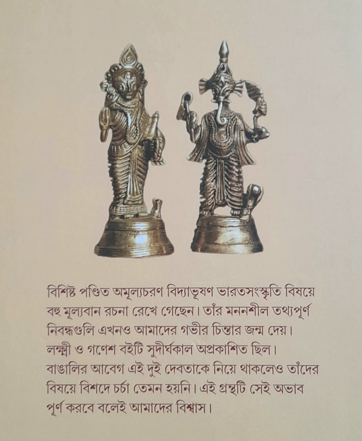 প্রায় শতবর্ষ পূর্বে প্রবাসী পত্রিকায় গণেশ এবং লক্ষ্মী বিষয়ে ধারাবাহিক প্রবন্ধ লিখেছিলেন ভারততত্ত্ববিদ অমূল্যচরণ বিদ্যাভূষণ। সেই প্রবন্ধগুলিই গ্রন্থিবদ্ধ হয়ে প্রকাশিত এই বই।