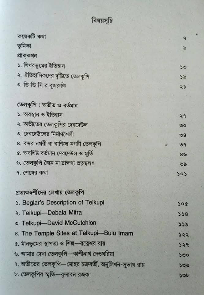 এই গ্রন্থে তেলকূপি ও সংলগ্ন অঞ্চলের ইতিহাস, মন্দির নগরীর বিবরণ ছাড়াও অসংখ্য মূর্তির বিস্তৃত পরিচয় দিয়েছেন পুরুলিয়ার বিশিষ্ট গবেষক ড. সুভাষ রায়।