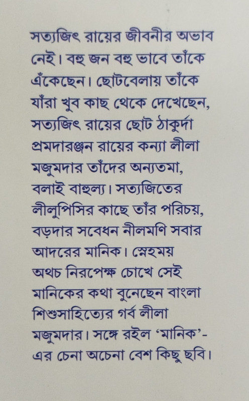 সত্যজিৎ রায়ের জীবনীর অভাব নেই। বহু জন বহু ভাবে তাঁকে এঁকেছেন। ছোটবেলায় তাঁকে যাঁরা খুব কাছ থেকে দেখেছেন, সত্যজিৎ রায়ের ছোট ঠাকুর্দা প্রমদারঞ্জন রায়ের কন্যা লীলা মজুমদার তাঁদের অন্যতমা, বলাই বাহুল্য। সত্যজিতের লীলুপিসির কাছে তাঁর পরিচয়, বড়দার সবেধন নীলমণি সবার আদরের মানিক। স্নেহময় অথচ নিরপেক্ষ চোখে সেই মানিকের কথা বুনেছেন বাংলা শিশুসাহিত্যের গর্ব লীলা মজুমদার। সঙ্গে রইল 'মানিক'-এর চেনা অচেনা বেশ কিছু ছবি।