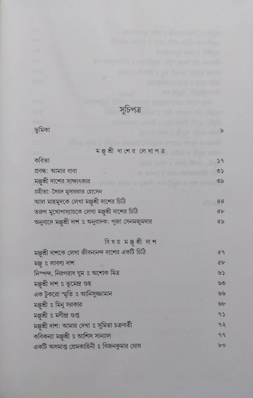 মঞ্জুশ্রীর সহপাঠী, প্রেমিক থেকে শুরু করে প্রসূন মুখার্জি, যিনি জীবনানন্দের হারিয়ে গিয়ে ঠোঙা হতে শুরু করা জীবনানন্দের পাণ্ডুলিপিও উদ্ধার করে দিয়েছিলেন, তাঁর লেখাও আছে এই সংকলনে।