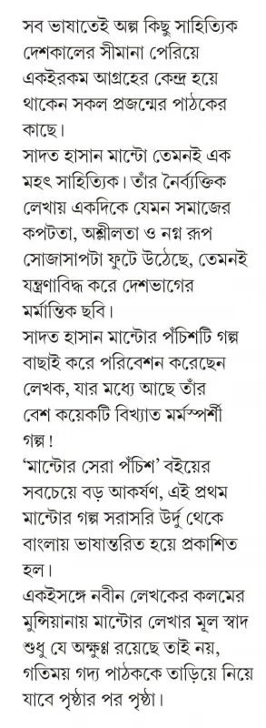 সাদত হাসান মান্টোর পঁচিশটি গল্প বাছাই করে পরিবেশন করেছেন লেখক, যার মধ্যে আছে তাঁর বেশ কয়েকটি বিখ্যাত মর্মস্পর্শী গল্প !