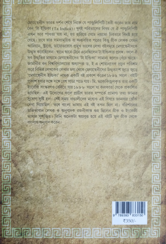 মেয়াছেনীস ভারত দর্শন শেয়ে নিজে যে পান্ডুলিপিটি তৈরী করেন তার নাম দেন 'টা ইন্ডিকা (Ta Indica)। খুবই পরিতাপের বিষয় যে ঐ পান্ডুলিপিটি এখন আর পাওয়া যায় না, হয় হারিয়ে গেছে নয়তো চিরতরে বিনষ্ট হয়ে গেছে। তবে তার সমসাময়িক বা অব্যবহিত পরের কিছু গ্রীক লেখক যেমন আরিয়ান, স্ট্রাবো, ডায়োডরোস প্রমুখ তাদের লেখা বইসমূহে মেগান্ধেনীসকে উদ্ধৃত করেছিলেন। স্থানে স্থানে টেনে এনেছিলেন টা ইন্ডিকার প্রসঙ্গ। ফলে ঐ সব উদ্ধৃতির মাধ্যমে মেগান্ধেনীসের 'টা ইন্ডিকা' সামান্য হলেও বেঁচে আছে। জার্মানীর বন বিশ্ববিদ্যালয়ের অধ্যাপক ৬. ই এ শোয়ানবেক প্রচুর পরিশ্রম করে বিভিন্ন লেখকের লেখার মধ্য থেকে মেগাস্থেনীসের উদ্ধৃতাংশ জুড়ে জুড়ে 'মেগাস্থেনীস ইন্ডিকা' নামক একটি বই প্রকাশ করেন ১৮৪৬ সালে। বইটি প্রকাশ হবার সঙ্গে সঙ্গে বেশ সাড়া পড়ে যায়। মি. ম্যাককিন্তুলকৃত তার একটি ইংরেজি সংস্করণও বেরিয়ে যায় ১৮৮৮ সালে যা কলকাতা থেকে প্রকাশিত হয়েছিল। এই উদ্যেগের ফলে প্রাচীণ ভারত সম্পর্কে প্রামাণ্য তথ্য জানার সুযোগ সৃষ্টি হল। সেই সময় বাঙালীদের মধ্যেও এই বিষয়ে জানবার ঝোঁক দেখা গিয়েছিল। তবে বাংলা ভাষায় এই বই তখন ছিল না। বরিশালের প্রতিভাবান লেখক ও অনুবাদক রজনীকান্ত গুহ ছিলেন গ্রীক ও ইংরেজী ভাষার সুপন্ডিত। তিনি অনেকটা স্বপ্রবৃত্ত হয়ে এই বইটি মূল গ্রীক থেকে বাংলায় অনুবাদ করেন।