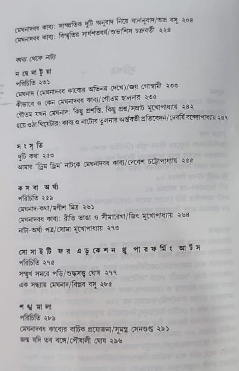 ১৮৬১ সালের ৪ জানুয়ারি প্রকাশিত মাইকেল মধুসূদন দত্ত প্রণীত 'মেঘনাদবধ কাব্য'। গত দেড়শ বছরের অধিক এই কাব্য নিয়ে প্রকাশিত অগণ্য উল্লেখযোগ্য প্রবন্ধের থেকে রাজনারায়ণ বসু, জ্যোতিরিন্দ্রনাথ ঠাকুর, রবীন্দ্রনাথ ঠাকুর হয়ে ভবতোষ দত্ত, দিব্যজ্যোতি মজুমদার, সুমিতা চক্রবর্তী, নৃসিংহপ্রসাদ ভাদুড়ীর মতো আঠারো জন লেখকের আলোচনা- সমালোচনা এর দুই মলাটে আবদ্ধ হয়েছে। গ্রন্থটির অন্যতম আকর্ষণ মধুকবির প্রাসঙ্গিক একুশটি চিঠির নির্বাচিত অংশ এবং টুকরো কথা বিভাগ-যেখানে আছে অর্থনীতিবিদ অশোক মিত্রের অপ্রকাশিত চিঠি, মাংস বিক্রেতা মহম্মদ আজাদের সাক্ষাৎকার, যিনি 'মেঘনাদবধ কাব্য' অনর্গল আবৃত্তি করে যান এই যুগেও।