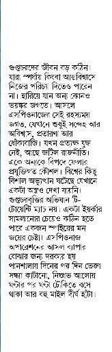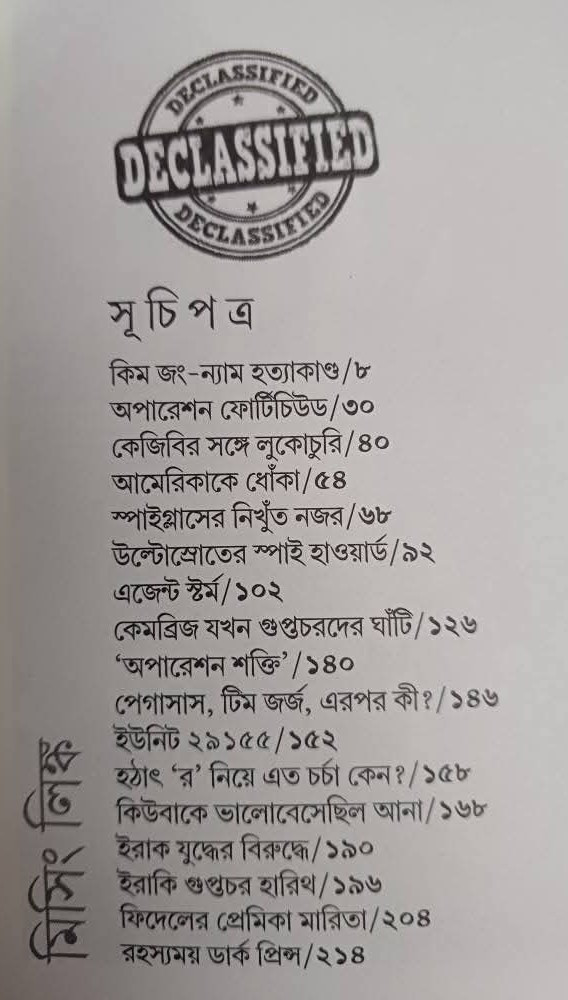 গুপ্তচরদের জীবন বড় কঠিন। যারা স্পর্ধায় কিংবা আত্মবিশ্বাসে নিজের পরিচয় দিতেও পারেন না। হারিয়ে যান অন্য কোনও ভয়ঙ্কর জগতে। আসলে এসপিওনাজের সেই রহস্যময় জগত, যেখানে শুধুই সন্দেহ আর অবিশ্বাস, প্রতারণা আর ধোঁকাবাজি। যখন এতাক্ষ যুদ্ধ নেই, আছে জটিল রাজনীতি। একে অন্যকে বিপদে ফেলার প্রযুক্তিগত কৌশল। বিশ্বের কিছু বিশাল অভ্যুত্থান ঘটেছে যেখানে একটা অস্ত্রও দেখা যায়নি। গুপ্তচরবৃত্তির অভিযান টি-টোয়েন্টি ম্যাচ নয়। একটা ইয়র্কার সামলানোর চেয়েও কঠিন হতে পারে একজন স্পাইয়ের মন জয়ের চেষ্টা। এসপিওনাজ অপারেশনের আসল ব্যাপার বোঝার জন্য দরকার হয় পানশালায় দিনের পর দিন ভেজা সন্ধ্যা কাটানো, নিষ্প্রভ আলোয় ঘণ্টার পর ঘণ্টা চৌকিতে বসে থাকা আর বহু মাইল দীর্ঘ হাঁটা।
