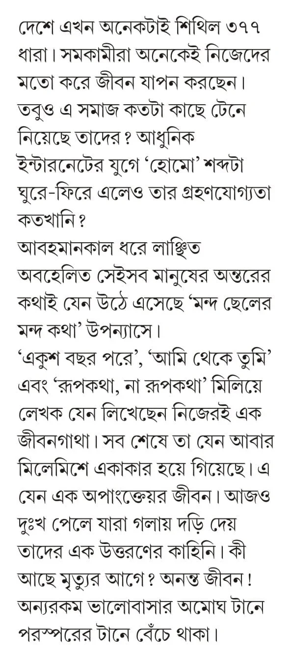 আবহমানকাল ধরে লাঞ্ছিত অবহেলিত সেইসব মানুষের অন্তরের কথাই যেন উঠে এসেছে ‘মন্দ ছেলের মন্দ কথা’ উপন্যাসে।