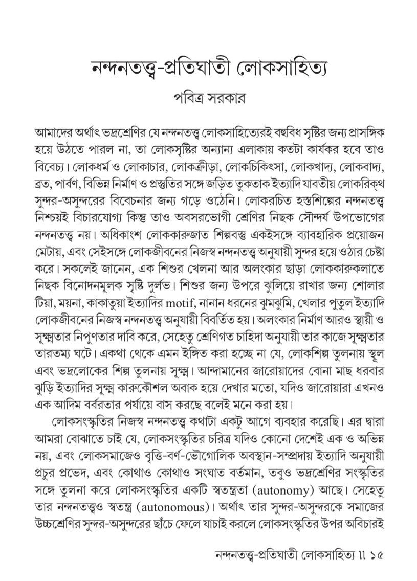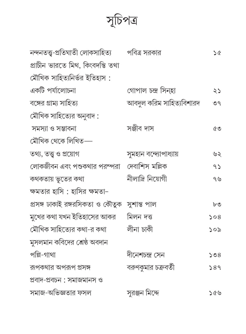আমাদের বাংলায় কত কত কাল আগে থেকে একশো বছর আগেও মৌখিক ঐতিহ্য নিয়ে ছড়িয়ে ছিটিয়ে ছিল গল্পকথা, গীতিকথা, গান, ধাঁধা, ছড়া, প্রবাদ, বচন। ঘরে ঘরে সংসারের ছেলেপুলেদের জন্য ঠাকুমা-দিদিমা-মাসি-পিসিরা গল্প বানাতেন। তাঁদের কল্পনার উড়ান ছিল রূপকথার দেশে, রাজপুত্র-রাজকন্যারা হত চরিত্র, কখনও পশুপাখি, দৈত্যদানো, ভূতপেতনি হাজির হত তাঁদের গল্পে। শুধু তো গল্প নয়, ছেলেমেয়ে ভুলোনো ছড়া, নানা ব্রতের ছড়া-আনন্দ-বিষাদের গান-কথা, নিষেধ-নির্দেশ নিয়ে বিস্তর বচন স্বতঃস্ফূর্ততা নিয়ে প্রকাশ হত। শ্রুতিতে রাখতেন অনুজেরা, তারাও বৃদ্ধকালে নাতি-নাতনি-পড়শিদের সেসব শোনাতেন, নিজেরাও রচক হতেন। ঘরের বাইরেও কত লোককাহিনি, গান, কৃষিকাজের অভিজ্ঞতা থেকে প্রবাদ-ছড়া, বচন, ধাঁধা মুখে মুখে তৈরি হয়ে সমাজের মধ্যে উড়ে বেড়াত। কত কত গান শ্রমজীবনকে কেন্দ্র করে, অবসরের বিনোদনে, কারও না কারও সৃজনীক্ষমতার জোরে মুখে মুখে তৈরি হত। হেন কোনো বিষয় নেই যা সেসবের অন্তর্ভুক্ত হত না! ব্যাপকভাবে তার চলাচল ছিল, হারিয়ে যাওয়াও সমাজের স্বাভাবিক গতি ধরেই চলত।