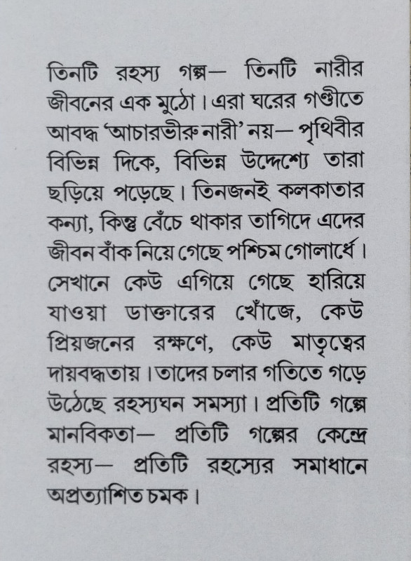 প্রায় পাঁচ দশক আমেরিকা প্রবাসী অধ্যাপক এবং নারীবাদী কর্মী শমীতা দাশ দাশগুপ্ত। সানন্দা, সুখী গৃহকোণ, বর্তমান, বাংলা ফেমিনা সহ বিভিন্ন পত্র-পত্রিকায় যাঁর লেখা আদৃত হয়ে চলেছে সুদীর্ঘ সময়কাল।তাঁরই সম্মোহনী কলমে ধরা পড়েছে এমনই রোমহর্ষক তিনটি রহস্য গল্প-- তিনটি নারীর জীবনের এক মুঠো...