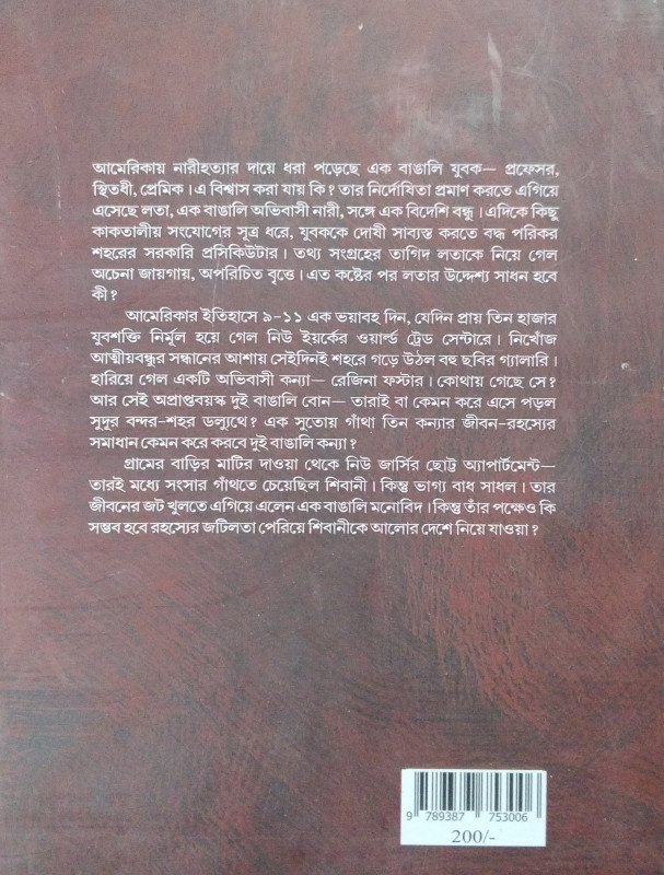 আমেরিকার ইতিহাসে ৯-১১ এক ভয়াবহ দিন, যেদিন প্রায় তিন হাজার যুবশক্তি নির্মূল হয়ে গেল নিউ ইয়র্কের ওয়ার্ল্ড ট্রেড সেন্টারে। নিখোঁজ আত্মীয়বন্ধুর সন্ধানের আশায় সেইদিনই শহরে গড়ে উঠল বহু ছবির গ্যালারি। হারিয়ে গেল একটি অভিবাসী কন্যা—রেজিনা ফস্টার। কোথায় গেছে সে? আর সেই অপ্রাপ্তবয়স্ক দুই বাঙালি বোন—তারাই বা কেমন করে এসে পড়ল সুদূর বন্দর-শহর ডল্যুথে? এক সুতোয় গাঁথা তিন কন্যার জীবন-রহস্যের সমাধান কেমন করে করবে দুই বাঙালি কন্যা?
