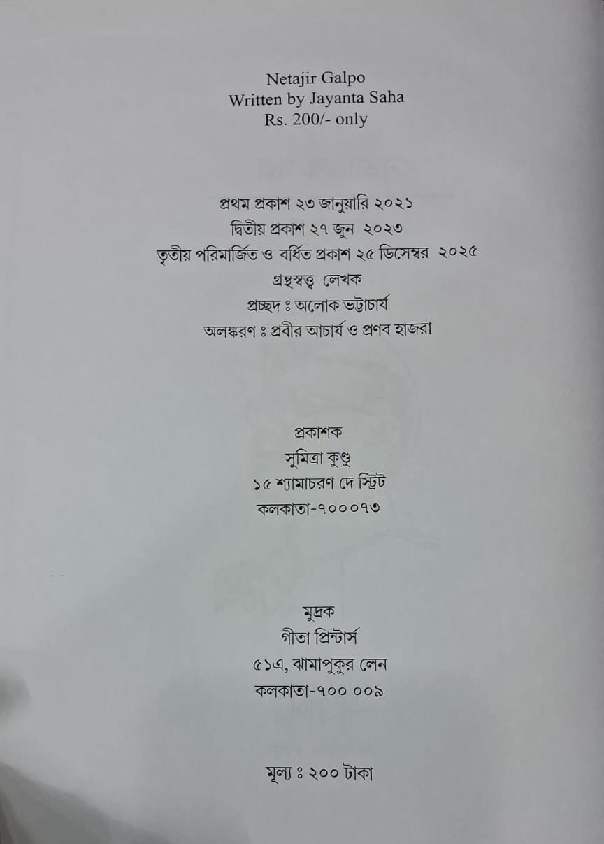 নেতাজির গল্প না গল্পের নেতাজি। ভারতের গর্ব সুভাষচন্দ্র বসুর গোটা জীবনটা গল্পের মতো শোনালেও আসলে গল্প হলেও সত্যি। মায়েরা শিশুদের ঘুম পাড়ায় সুভাষের জীবনের রোমহর্ষক ঘটনা শুনিয়ে। স্কুলের ছাত্ররা সাহস সঞ্চয় করে নেতাজির প্রতিবাদী চরিত্র থেকে। সুভাষচন্দ্রের আত্মত্যাগ, বীরত্ব আর দেশের প্রতি অকৃত্রিম ভালোবাসার কথা স্মরণ করে আমরা আজও চাপা গর্ব অনুভব করি। নেতাজির জীবন মানে প্রাণবাজি রেখে লড়াই করার ইতিহাস।
