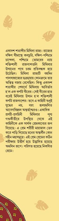 তবে এ কাহিনী শুধুই যুদ্ধের নয়, বরং হৃদয়মথিত আবেগবিহ্বল অন্তর্দ্বন্দ্বেরও। একাধিক প্রণয়ী-প্রণয়িনী মিথিলার পূণ্য গণ্ডকীতীরে উপস্থিত থেকে এই কাহিনীকে এক সার্থক প্রেমকাব্যের রূপ দিয়েছে। এ প্রেম শরীরী মায়াজাল ভেদ করে পাড়ি দিয়েছে মনের অন্তর্লীন কোন গহীন মহাসমুদ্রে। এই প্রেম প্রেমের কঠিন পরীক্ষায় উত্তীর্ণ হয়ে উদ্ভাসিত হয়েছে অমলিন রূপে। পরিণত হয়েছে নিকষিত প্রেমে।