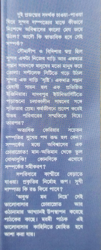 ‘অবুঝ মন নিয়ে’ সেই ভালোবাসার চোরাস্রোত আর ওঠানামার আখ্যানই উপস্থাপন করেছে পাঠকের কাছে। মরমী পাঠক এই ভালোবাসার কাহিনিতে মোহিত হবে আশা করা যায়।