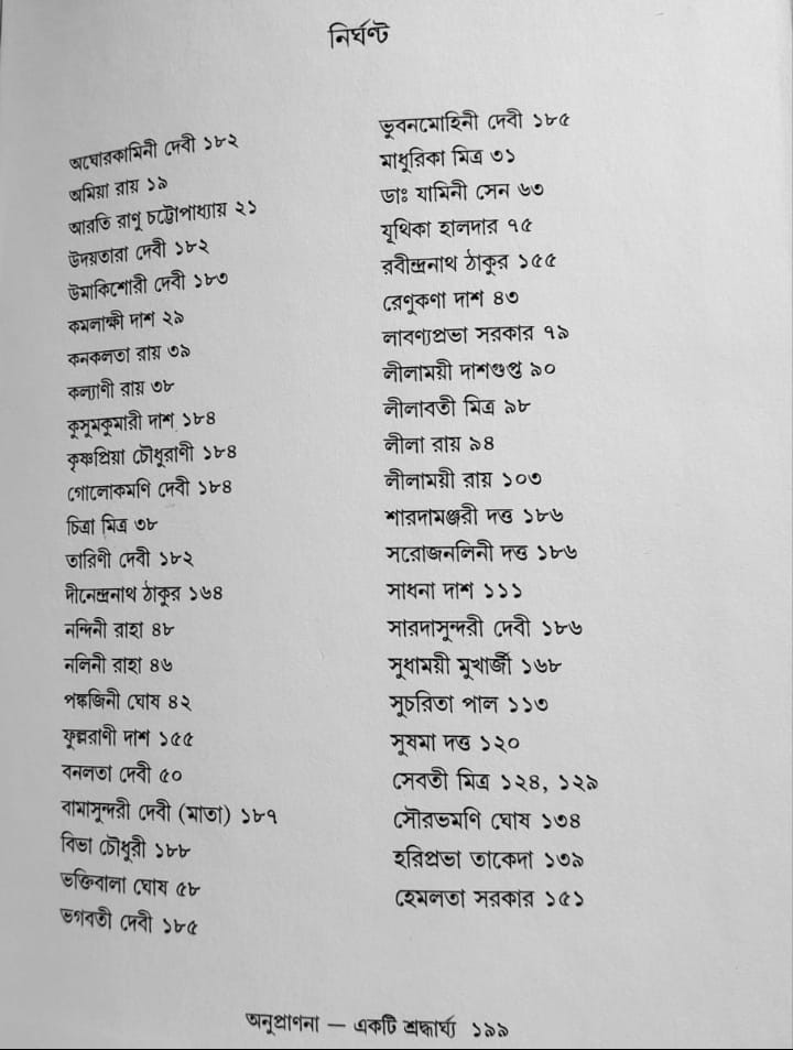মনের কোণে স্মৃতি হয়ে থেকে যাওয়া মানুষগুলি চির ভাস্বর। অনেকেরই স্মৃতি তোলপাড় করে বেরিয়ে আসে কিছু মনে রাখার মত প্রিয় নারী চরিত্র, যাঁরা অনেকেই আড়ালে থেকে গেছেন। কেউ বা স্বল্প পরিচিত বা বিশেষ পাঠক গোষ্ঠীর মধ্যেই আবদ্ধ। সাধারণ পাঠকদের মধ্যে এইরূপ কয়েকটি নারীচরিত্রের সাথে পরিচয় করানো এবং নারীশিক্ষা ও প্রগতির ক্ষেত্রে সমাজসংস্কারক মনীষীদের শ্রদ্ধা জ্ঞাপনে, রাজা রামমোহন রায়ের ২৫০ বছর পূর্তি স্মরণে, সম্মিলিত প্রচেষ্টায় রচিত হলো এই বিশেষ সংকলনটি, 'অনুপ্রাণনা-একটি শ্রদ্ধার্ঘ্য'।