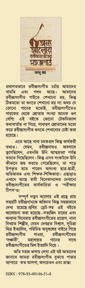 সম্পূর্ণ নতুন আলোয় এই গ্রন্থে প্রায় সত্তরটি রবীন্দ্রগানকে অভিনব কিন্তু সহজভাবে দেখা হয়েছে। ছবির প্লেট-সহ এই বইতে আলোচনা করা হয়েছে-সত্যজিৎ রায়ের এবং অন্যান্য সিনেমায় রবীন্দ্রসংগীতের প্রয়োগ, নানা বিখ্যাত শিল্পীর, যেমন দেবব্রত বিশ্বাস, সুচিত্রা মিত্র ইত্যাদির, পরিচিত অনুষঙ্গের বাইরে গিয়ে রবীন্দ্রসংগীত গাওয়া, রবীন্দ্রসংগীতের 'সঞ্চারী', মহালয়ার গানের রবীন্দ্রসংগীতের মিল ইত্যাদি নিয়ে। সাথে অতি সহজ ভাষায় লেখা এই বই আমাদের জানাবে আমরা রবীন্দ্রসংগীত বুঝতে পারার ব্যাপারে কত আলগা, অসচেতন এবং ভ্রান্ত!