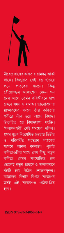 নীরেন্দ্র দাসের কবিতায় রামধনু আকা থাকে। বিচ্ছুরিত সেই রঙ ছড়িয়ে পড়ে পাঠকের হৃদয়ে। কিন্তু রৌদ্রোজ্জ্বল আকাশেও যেমন ঘন মেঘ আসে তেমন কবিজীবনে ছাপ ফেলে সময় ও সমাজ। ভালোবাসার দ্রাক্ষারসের বদলে তাঁর কবিতার শরীরে লীন হয়ে আসে বিষাদ। উচ্চারিত হয় বিষাদমাখা পংক্তি। 'পলাশনগরী' সেই সময়ের দলিল। প্রথম মুদ্রণ নিঃশেষিত হওয়ায় দ্বিতীয় ও পরিবর্ধিত সংস্করণ পাঠকের সামনে আনল বনলতা। পূর্বের কবিতাগুলির সাথে বেশ কিছু নতুন কবিতা যেমন সংযোজিত হল তেমনই নতুন প্রচ্ছদে ও অলংকরণে বইটি হয়ে উঠল শোভনসুন্দর। আমাদের বিশ্বাস বিগত সংস্কণের মতই এই সংস্করণও পাঠক-প্রিয় হবে।