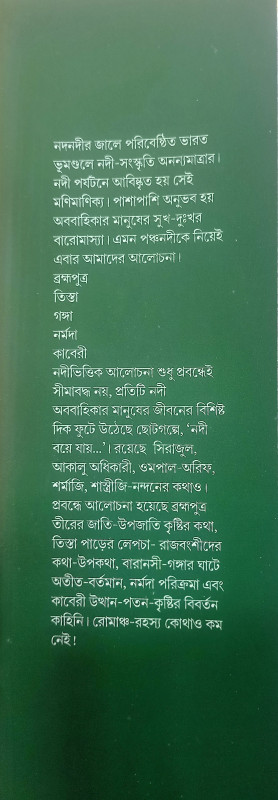 কাবেরী নদীভিত্তিক আলোচনা শুধু প্রবন্ধেই সীমাবদ্ধ নয়, প্রতিটি নদী অববাহিকার মানুষের জীবনের বিশিষ্ট দিক ফুটে উঠেছে ছোটগল্পে, 'নদী বয়ে যায়...'। রয়েছে সিরাজুল, আকালু অধিকারী, ওমপাল-অরিফ, শর্মাজি, শাস্ত্রীজি নন্দনের কথাও। প্রবন্ধে আলোচনা হয়েছে ব্রহ্মপুত্র তীরের জাতি-উপজাতি কৃষ্টির কথা, তিস্তা পাড়ের লেপচা- রাজবংশীদের কথা-উপকথা, বারানসী-গঙ্গার ঘাটে অতীত-বর্তমান, নর্মদা পরিক্রমা এবং কাবেরী উত্থান-পতন-কৃষ্টির বিবর্তন কাহিনি। রোমাঞ্চ-রহস্য কোথাও কম নেই!