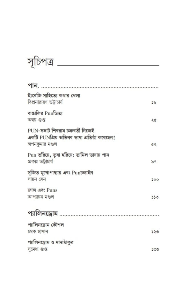 এই পান এবং প্যালিনড্রোম নিয়ে বাংলা ভাষায় সর্বপ্রথম এমন একটি সংকলন তৈরি হয়েছে। এই বইতে দুটি বিষয়কে নিয়েই একাধিক প্রবন্ধ রয়েছে।