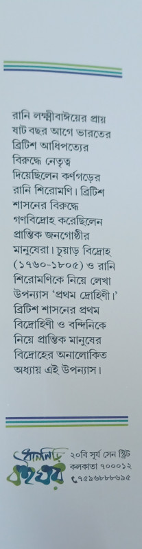 রানি লক্ষ্মীবাঈয়ের প্রায় ষাট বছর আগে ভারতে ব্রিটিশ আধিপত্যের বিরুদ্ধে বিদ্রোহে নেতৃত্ব দিয়েছিলেন কর্ণগড়ের রানি শিরোমণি। বৃটিশ শাসনের বিরুদ্ধে গণবিদ্রোহ করেছিলেন প্রান্তিক জনগোষ্ঠীর মানুষেরা। ধানসিড়ি থেকে প্রকাশিত হতে চলেছে চূয়াড় বিদ্রোহ(১৭৬০-১৮০৫) ও রানি শিরোমণিকে নিয়ে সুমন মহান্তি-র লেখা উপন্যাস ‘প্রথম দ্রোহিণী’। ব্রিটিশ শাসনের প্রথম বিদ্রোহিণী ও বন্দিনীকে নিয়ে,প্রান্তিক মানুষের বিদ্রোহের অনালোকিত অধ্যায় নিয়ে এই উপন্যাস।