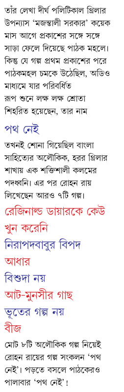 তখনই শোনা গিয়েছিল বাংলা সাহিত্যের অলৌকিক, হরর থ্রিলার শাখায় এক শক্তিশালী কলমের পদধ্বনি। এর পর রোহন রায় লিখেছেন আরও ৭টি গল্প।