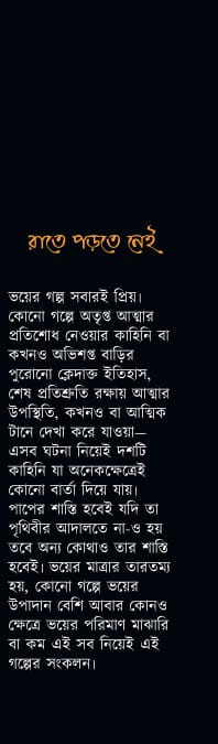 ভয়ের গল্প সবারই প্রিয়। কোনো গল্পে অতৃপ্ত আত্মার প্রতিশোধ নেওয়ার কাহিনি বা কখনও অভিশপ্ত বাড়ির পুরোনো ক্লেদাক্ত ইতিহাস, শেষ প্রতিশ্রুতি রক্ষায় আত্মার উপস্থিতি, কখনও বা আত্মিক টানে দেখা করে যাওয়া-এসব ঘটনা নিয়েই দশটি কাহিনি যা অনেকক্ষেত্রেই কোনো বার্তা দিয়ে যায়। পাপের শাস্তি হবেই যদি তা পৃথিবীর আদালতে না-ও হয় তবে অন্য কোথাও তার শাস্তি হবেই। ভয়ের মাত্রার তারতম্য হয়, কোনো গল্পে ভয়ের উপাদান বেশি আবার কোনও ক্ষেত্রে ভয়ের পরিমাণ মাঝারি বা কম এই সব নিয়েই এই গল্পের সংকলন।