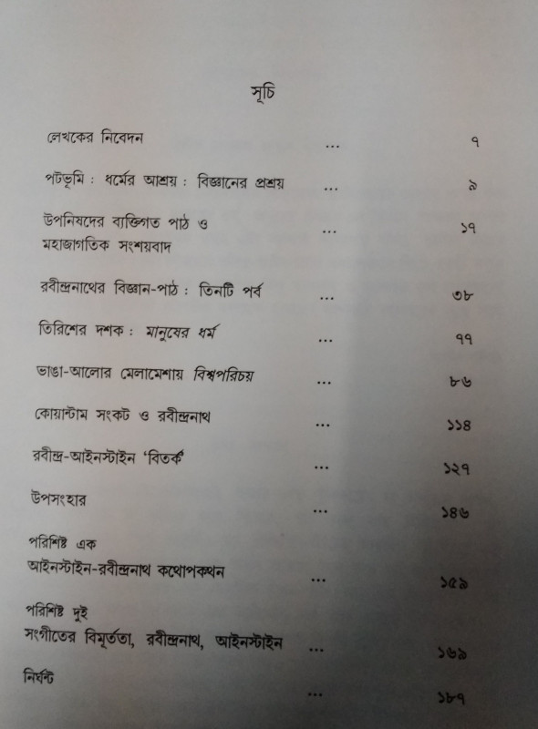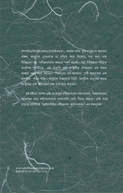 এই বইতে লেখক চেষ্টা করেছেন রবীন্দ্রনাথের নন্দনভাবনা, বিজ্ঞানভাবনা, ধর্মভাবনা আর দর্শনভাবনাকে পাশাপাশি রেখে বিচার করতে। সেই সঙ্গে রয়েছে পরিশিষ্টে 'আইনস্টাইন-রবীন্দ্রনাথ কথোপকথন'-এর বঙ্গানুবাদ।