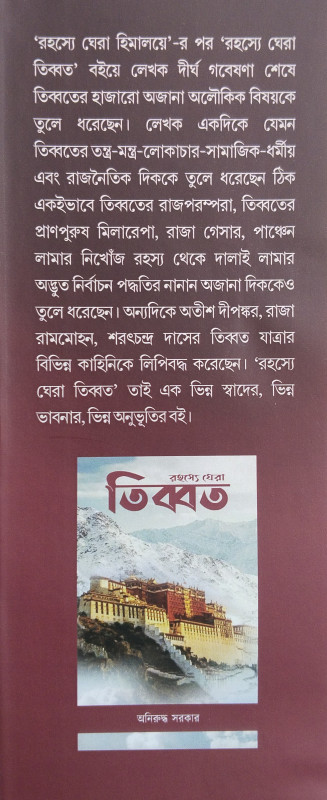তিব্বত এক ‘রহস্যময় দেশ’। যে দেশের অধিকাংশ বিষয় আজও আমাদের অজানা। তিব্বতেই না-কি রয়েছে শাম্ভালা বা জ্ঞানগঞ্জ। তিব্বতে আর্যদের সন্ধানে হিটলারের নাৎসি বাহিনি অভিযান চালিয়েছিল। লেখক দীর্ঘ গবেষণা চালিয়েছেন তিব্বত দেশটির ওপর। যেমন তিব্বতের রাজধানী লাসার পোতালা প্রাসাদ থেকে দালাই লামার অলৌকিক নির্বাচন পদ্ধতি নিয়ে আলোচনা করেছেন, তেমনি তিব্বতের মিথ, রহস্য, অলৌকিক বিষয়, সীমান্ত, রাজ-পরম্পরা, খাওয়া-দাওয়া নিয়েও আলোচনা করেছেন। এর পাশাপাশি লেখক তিব্বতের সামাজিক, রাজনৈতিক ও ধর্মীয় ইতিহাসের কথাও তুলে ধরেছেন এই বইয়ে।