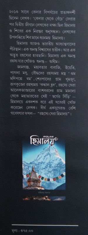 জ্ঞানগঞ্জ, মহাবতার বাবাজি, ইয়েতি, পাগলা মধু, বৌদ্ধদের রহস্যময় মন্ত্র “ওম মণিপদ্মে হুম”, শেরপাদের গ্রাম খুমজুং, রূপকুণ্ডের রহস্যময় ‘কঙ্কাল হ্রদ’, রহস্যে ঘেরা আলেকজাণ্ডারের বংশধরদের গ্রাম মানালা থেকে মহাভারতের সেই ‘স্বর্গের সিঁড়ি’— হিমালয়ে একদশক ধরে এসবেরই খোঁজ করেছেন লেখক। দীর্ঘ একযুগেরও বেশি গবেষণার ফসল— “রহস্যে ঘেরা হিমালয়”।