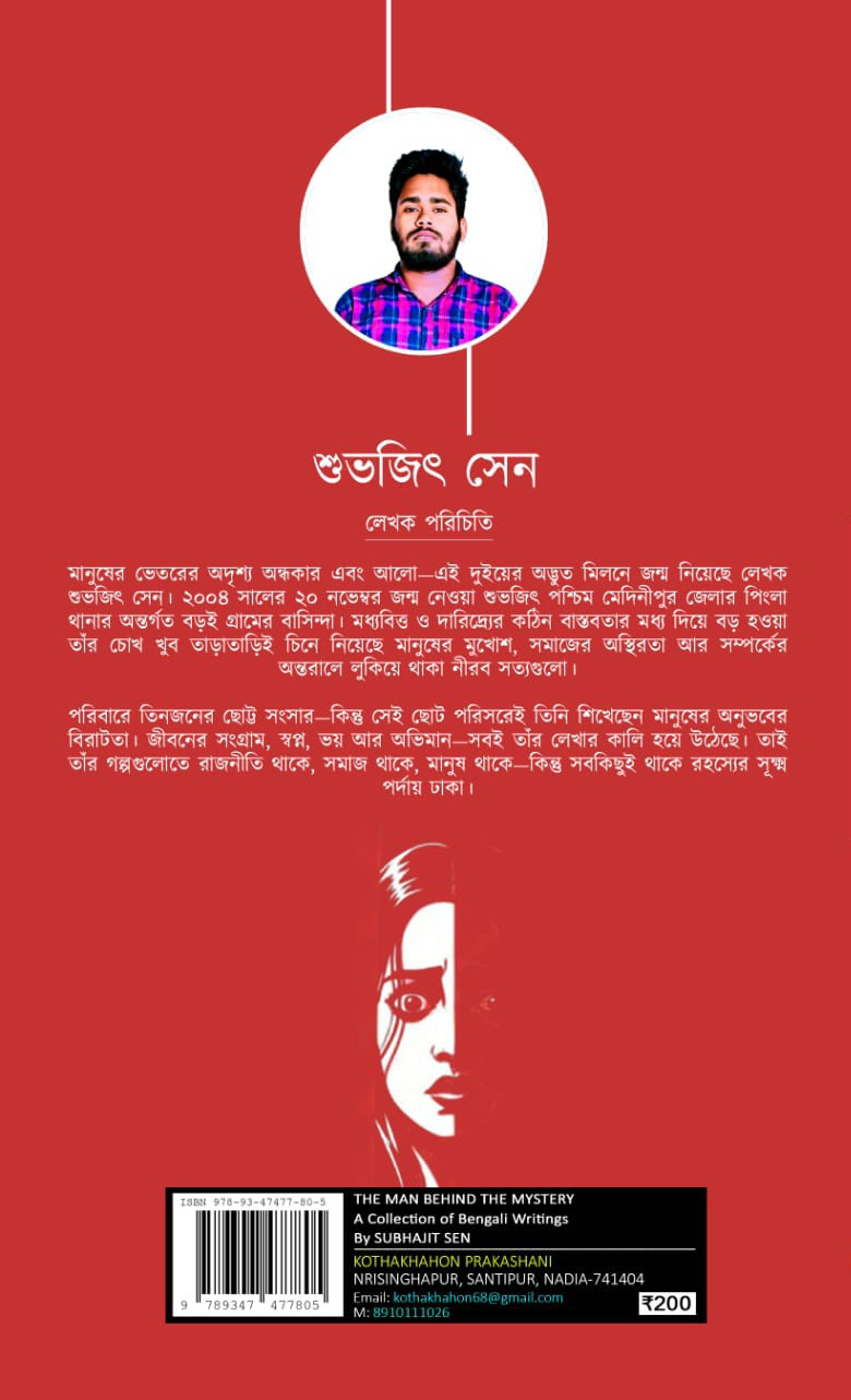 মানুষের ভেতরের অদৃশ্য অন্ধকার এবং আলো-এই দুইয়ের অদ্ভুত মিলনে জন্ম নিয়েছে লেখক শুভজিৎ সেন। ২০০৪ সালের ২০ নভেম্বর জন্ম নেওয়া শুভজিৎ পশ্চিম মেদিনীপুর জেলার পিংলা থানার অন্তর্গত বড়ই গ্রামের বাসিন্দা। মধ্যবিত্ত ও দারিদ্র্যের কঠিন বাস্তবতার মধ্য দিয়ে বড় হওয়া তাঁর চোখ খুব তাড়াতাড়িই চিনে নিয়েছে মানুষের মুখোশ, সমাজের অস্থিরতা আর সম্পর্কের অন্তরালে লুকিয়ে থাকা নীরব সত্যগুলো।