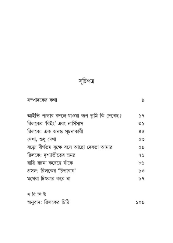 কবিতার বিশ্বে অনশ্বর নামগুলির অন্যতম রাইনের মারিয়া রিলকে (১৮৭৫-১৯২৬)। জর্মান ভাষার এই কবির রচনায় বাঙালি লেখক-পাঠকের অবগাহনও অর্ধশতক পার করেছে অনেকদিন। এদিক থেকে কবি অমিতাভ মৈত্রের বর্তমান গ্রন্থটি বিচ্ছিন্ন কোনো প্রয়াসও নয়। প্রয়াণের শতবার্ষিকে রিলকের জীবন ও কবিতা সম্পর্কে এই আলোচনা গ্রন্থের প্রকাশ সশ্রদ্ধ সংযোজন হিসাবেই বিবেচিত হবে বাংলায়। তাঁর কবিতা অনুধাবনে নতুন সময়ের পাঠকেরও হবে এখানে অন্য মানসযাত্রা।